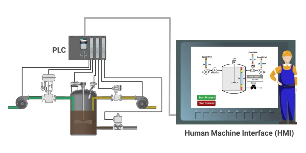 - Output (Execution): The controller sends commands to execution devices—such as motor starters, relays, or HMI displays—to alter the state of the machine.